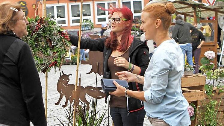 Ein buntes Bild bot der Marktplatz von Eltmann beim Spätsommerfest des Obst- und Gartenbauvereins Eltmann am Sonntag. Gärtnereien und Floristen sorgten für Blumenpracht und Dekomöglichkeiten, zudem gab es Handwerkskunst zu bestaunen. Allerdings schlug das Wetter Eskapaden, so dass man teilweise in der Stadthalle Unterschlupf suchen musste.