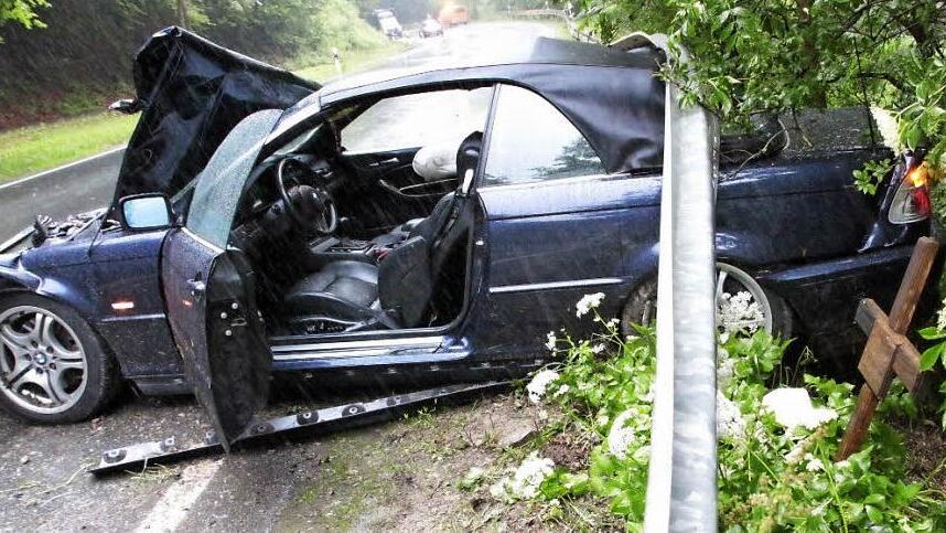 Das Fahrzeug kam nur wenige Zentimeter neben einem Holzkreuz zum Stehen, das daran erinnert, dass hier bereits eine Person bei einem Unfall ihr Leben verloren hat. Die Fahrerin wurde bei dem Unfall verletzt und mit dem Rettungsdienst in ein Krankenhaus gebracht. Am Fahrzeug entstand ein Schaden von rund 7000 Euro.
