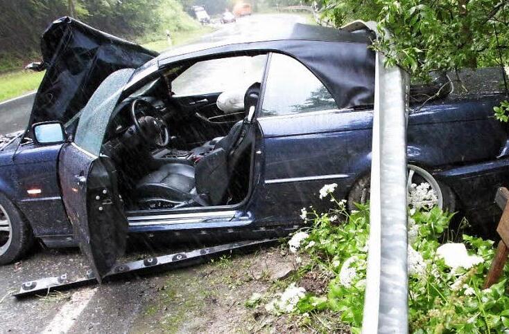 Kurz vor der Abzweigung nach Eschlipp verlor eine 23-jährige Frau, die in Richtung Drügendorf unterwegs war, in einer scharfen Rechtskurve die Kontrolle über ihren Wagen. Das Heck des Fahrzeuges brach nach links aus, der schwarze BMW drehte sich, ehe er sich zum Teil unter die Leitplanke schob.