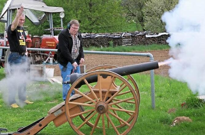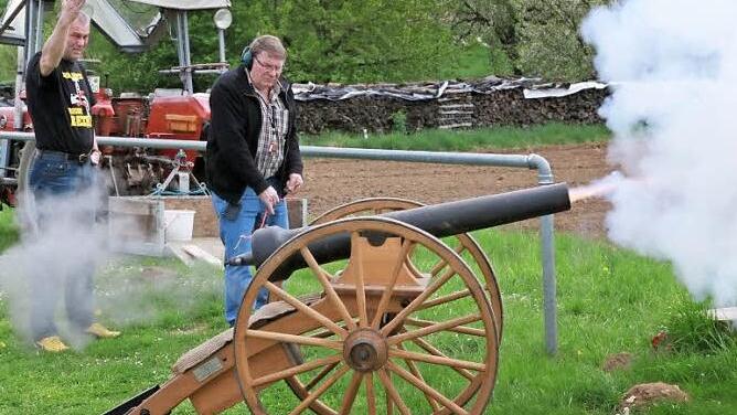 Pautzfeld — In Pautzfeld gibt es keine Hexen, dafür sorgt die Reservistenkameradschaft Pautzfeld-Aischgrund. Jedes Jahr donnern zur Walpurgisnacht aus der großen Salutkanone drei Schüsse in den Himmel, um die Hexen zu vertreiben. "Seit der Restauration der Kanone im Jahr 2003 ist das Tradition", sagt der Vorsitzende und Kanonier der Reservistenkameradschaft, Josef Schuberth. Die imposante Salutkanone mit einem Kaliber von 42 mm ist Baujahr 1903 und wurde vom damaligen Veteranen- und Militärverein angeschafft. Die Lafette ist aus Buchenholz, die Räder sind aus Eschenholz gefertigt. 100 Gramm Böllerpulver kommen in eine Kartusche, die mit einem Korken verdämmt entzündet wird. Foto: Mathias Erlwein