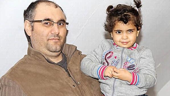 Pautzfeld — Khaiiad hält die kleine Maria auf dem Arm. Sie ist auf dem linken Auge blind: Ein Bombensplitter hatte sie getroffen. Einige der neuen Bewohner der Flüchtlingsunterkunft in Pautzfeld kommen aus Syrien. So wie die 42-jährige Fatima mit ihrer kleinen Tochter Maria. Khaiiad, ebenfalls ein Syrer, wohnt neben dem Zimmer der beiden. Er spricht gut Englisch und übersetzt für die Mutter. Sie erzählt, dass fünf ihrer Kinder noch in Syrien und dem Libanon sind. Und auch ihr Mann ist im Libanon. Foto: Mathias Erlwein