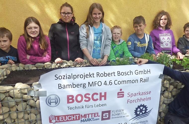 15 Mitarbeiter der Firma Bosch setzten dieses Sozialprojekt nun zusammen mit den Kindern in die Tat um und bauten mit ihnen drei Hochbeete, die sie auch gleich bepflanzen konnten. Die Pflanzen, die Erde und vieles mehr dafür wurden von Firmen gespendet und an Geldspenden gingen weitere 3592 Euro ein. Abzüglich der Kosten für das weitere Material für dieses Projekt blieb noch Geld übrig, das man für einen Urlaub an der Nordsee für die Kinder verwenden wird. Denn laut Brietz könne man sich so einen Urlaub normalerweise nicht leisten. Sie dankte den Mitarbeitern der Firma Bosch und allen Firmen und Privatleuten, die für dieses Projekt gespendet hatten. Unser Foto zeigt die Kinder und Mitarbeiter der Firma Bosch vor einem der gemeinsam gebauten Hochbeete vor dem Kleinstheim Jule.