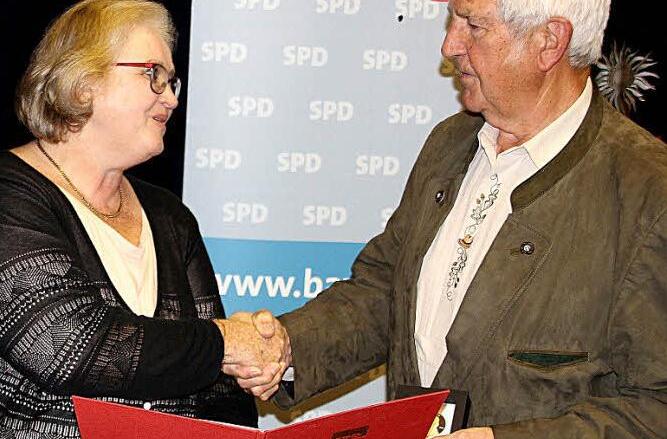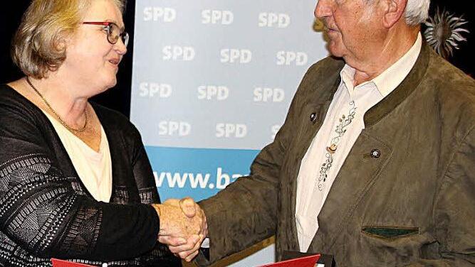 Augsfeld — Das 20-jährige Bestehen des Unterbezirks Rhön-Haßberge und des Kreisverbandes Bad Kissingen feierte die Arbeitsgemeinschaft 60plus der SPD in Bad Kissingen. Dabei wurde der langjährige Unterbezirksvorsitzende August Werner aus dem Haßfurter Stadtteil Augsfeld von der 60plus-Landesvorsitzenden Jella Teuchner mit der Willy-Brandt-Medaille ausgezeichnet. Werner ist seit Jahren ehrenamtlich tätig. Foto: Dieter Britz