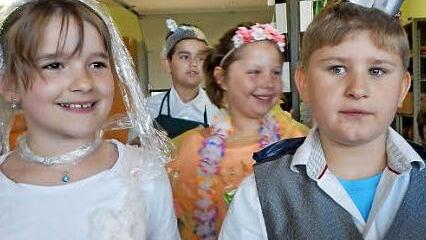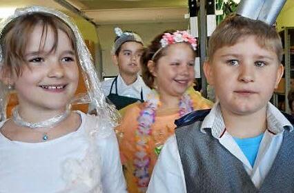Teuschnitz aus Müll fantasievolle und lustige Kleidungsstücke her, die sie dem Publikum in einer Modenschau präsentierten: eine Badenixe, zwei Fußballer, einen Roboter, eine Prinzessin, ein Brautpaar mit Blumenmädchen, einen Bauarbeiter und einen Arzt. Foto: privat