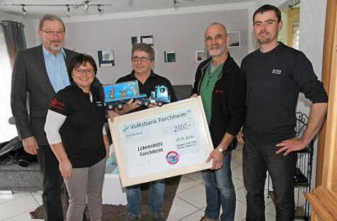 Der Geschäftsführer der Forchheimer Lebenshilfe, Norbert Fischer, staunte nicht schlecht, als er den Spendenscheck von 2000 Euro entgegennahm. Das Geld stammt aus dem Erlös der Tombola des Sommerfestes des Brummi-Clubs Fränkische Schweiz.