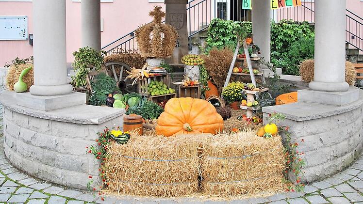 Herrlich geschmückt ist der Brunnen in der Neubrunner Ortsmitte. Passend zum Erntedankfest, das am Sonntag gefeiert wird. Die Frauen des Neubrunner Obst- und Gartenbauvereins haben sich viel Mühe gemacht und den Brunnen für den Erntedank gerichtet. Viele heimische Nahrungsmittel wie Nüsse, Kraut, Äpfel oder Birnen können bewundert werden. Nicht zu übersehen ist der riesige Kürbis in der Mitte. Dazu läuft ein neuer Wettbewerb: Wer kann das Gewicht des Kürbisses am besten schätzen?Am Brunnen liegen Teilnehmerlisten aus, die in die bereitstehende Urne eingeworfen werden sollen. Abgabeschluss ist der 11. Oktober. Die Gewinner werden benachrichtigt. Foto: Ewald Stretz