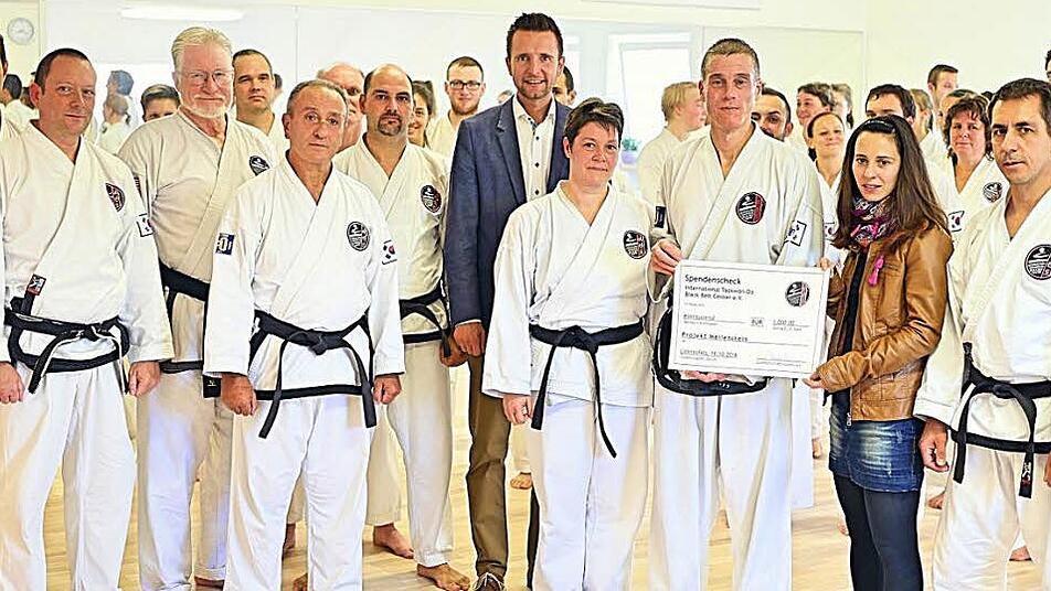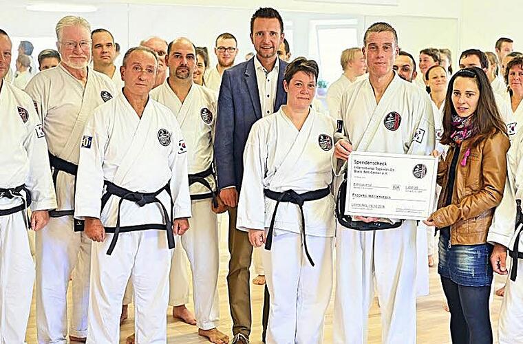 Im Rahmen dieser Veranstaltung wurde vom Verband International Taekwon-Do Black Belt Center eine Spendenübergabe durchgeführt. Der Verband ITKDBBC tritt nicht nur für die Verbreitung der Taekwon-Do in seiner ursprünglichen, traditionellen Form ein, sondern unterstützt auch gemeinnützige Einrichtungen. Insbesondere wird auf die Förderung von Kindern und Jugendlichen Wert gelegt. So wurden an das Projekt Meilenstein, verteten durch die Leiterin Andrea Zellmer 1000 Euro übergeben. Auch der Bürgermeister Andreas Hügerich (SPD) war der Einladung gefolgt und beobachte die Taekwon-Do-Präsentation.
