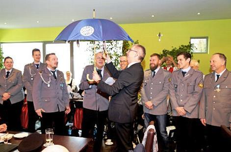Einen Höhepunkt bildete die Schirmherrn-Bitte an Bürgermeister Bernd Drummer, vorgetragen von Theobald Messingschlager. Der gesamte Festausschuss hatte sich aufgestellt, als der Vorsitzende in Prosa feierlich um die Zusage des Bürgermeisters bat. Der nahm bereitwillig symbolisch den Schirm an. Seine Gattin Susanne erhielt schon einmal einen Blumenstrauß für die zu erwartenden Entbehrungen. Vom 30. Mai bis 02. Juni 2019 will der Krieger- und Militärverein Schlaifhausen sein stolzes Fest begehen. Die Blaskapelle aus Poxdorf umrahmte mit zünftigen Weisen diesen Tag des Gedenkens und der Geselligkeit.