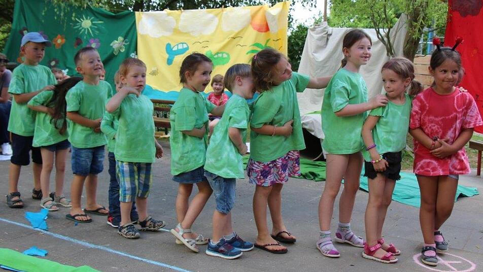 Machtilshausen waren sich die Gäste einig - es war ein gelungenes Fest mit einer tollen Aufführung der Kindergartenkinder. Monika Hufnagel eröffnete das Fest mit einem Gottesdienst. Die Kinder starteten mit einem Rap und alle Besucher fielen spontan in den ersten Applaus ein. In der Aufführung stand, bezugnehmend auf ein Projekt im Kindergarten, die Raupe bzw. der Schmetterling im Fokus. Eine Spielestraße mit Kinderschminken, Dosenwerfen, Dinge fühlen und schmecken, sowie die beliebte Tombola rundeten das Programm ab. Zum Abschluss führten das Team um Kindergartenleiterin Laura Metz noch ein Kasperltheater für Klein und Groß auf.