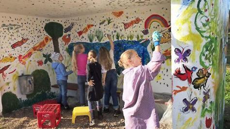 "Die Kinder haben das frei, ganz ohne Vorlage gemalt. Sie waren ganz konzentriert und haben nicht sich, sondern die Wände bemalt", erzählt Tanja Dvorak. Auch die Bürgermeisterin war kurz gekommen und hatte die Kinder gelobt. Außerdem stellte sie in Aussicht, dass vielleicht noch andere Bushäuschen bemalt werden dürften. Eigentlich hätte die Aktion bereits eine Woche früher stattfinden sollen, doch da hatte starker Regen einen Strich durch die Rechnung gemacht.