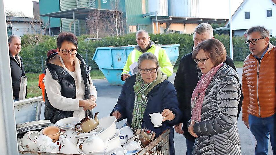 Das Gremium nahm bei seiner Besichtigung den Wertstoffhof genau in Augenschein. Die Damen waren vor allem von dem angelieferten Porzellan begeistert, das auch gerne für Polterhochzeiten ausgegeben wird und so eine weitere Verwendung findet. Die Straße, die um den Bauhof führt, soll noch asphaltiert werden.