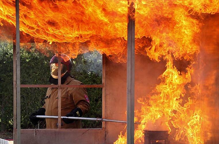 Wie im Team vorzugehen ist Nun gilt es, einen brennenden Papierkorb zu löschen. Das geschieht in Zweier-Teams, wobei einer das Kommando übernimmt. Dann sehen die Schüler, was passiert, wenn eine Spraydose - etwa in einem überhitzen Auto - explodiert.