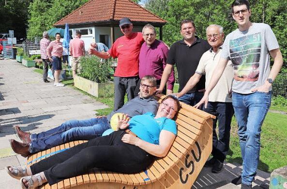 "Wenn man auf ein Einweihungsfest eingeladen wird, dann kommt man nicht mit leeren Händen", begründete der CSU-Ortsvorsitzende Michael Bohl die ungewöhnliche Übergabeaktion seines Teams. Bereits im November 2018 sei im Ortsverband die Idee entstanden, dem Verein der Schwimmbadfreunde eine Schwungliege zu schenken. Nach einer kurzen Planungsphase konnte der Bau der Liege schnell umgesetzt werden. "Dank vieler ehrenamtlicher Arbeitsstunden der Schwimmbadfreunde kommen jedes Jahr viele Besucher in unser schönes Freibad", so Bohl. Mit der Schwungliege möchte sich der Ortsverband bei allen Helfern bedanken und einen Beitrag zum tollen Ambiente im Freibad leisten.