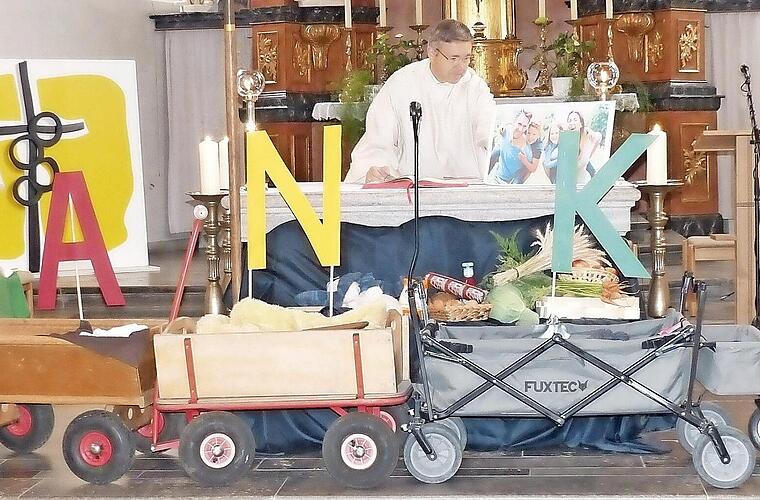 Das Wort "Danke" stand im Mittelpunkt des Erntedankgottesdienstes, der in der Pfarrkirche in Zeil als Familiengottesdienst gefeiert wurde.