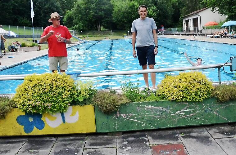 Dazu hatte der Verein an die Mitglieder einen Aufruf zur Mithilfe gestartet, und es haben sich tatsächlich sehr viele freiwillige Helfer gemeldet, was für eine außerordentliche Identifikation der Mitglieder mit ihrem Verein und ihrem Heimatort spreche, betonte Bürgermeister Jörg Neubauer und spricht schon bei der Eröffnung allen großen Dank im Namen der Gemeinde und im Namen der Bevölkerung aus. "Wir sehen, dass manche Kommunen in der Region durchaus Probleme in der Abwicklung des Freibadbetriebes sehen und es sich momentan nicht trauen, zu öffnen. Wir trauen uns, weil die Mitglieder mit idealistischem Einsatz voll hinter der Entscheidung stehen und sich an Vorschlägen beteiligten, wie man die Auflagen erfüllen wird, um den Mitgliedern diesen Badespaß zu gönnen", freut sich Bürgermeister Jörg Neubauer.