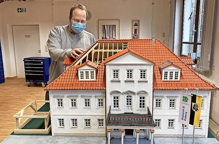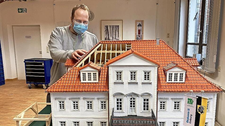 Baumeister Michael Kopelent ist stolz. Zu Recht. Das Bürglaß-Schlösschen, eines der Modelle aus der Ausstellung "Coburg in Miniatur" strahlt in neuem Glanz. Das alte war abgebröckelt - mehr noch, das Gebäude war Wind und Wetter ausgesetzt, Risse, Schimmel und Brüche ließen eine Restaurierung nicht mehr zu. Jetzt steht das neue Haus im ersten Stock der Wefa in Mönchröden, vor dem Eingang wehen die maßstabsgerechten Fahnen der Stadt Coburg und des Diakonischen Werkes.