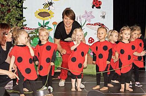 Vorsitzende Birgit Scholl freute sich über die vielen Besucher, die das Pfarrzentrum in Limbach nicht fassen konnte. "Glück beginnt da, wo man die Zeit vergisst", meinte sie und rief den Kleinen zu: "Ihr seid das Glück der Menschen hier, die mit euch das Glück wirklich erleben können." Das Personal unter Leiterin Elle Steinhäuser lobte sie für das große Engagement. In prachtvollen Kostümen stellten die Gruppen Glückssymbole dar. Da kamen die "Glückskäfer" mit ihrem "Glückskleetanz". Ihnen folgten die Fliegenpilze, diesmal als Glückspilze.