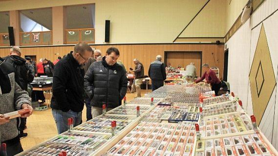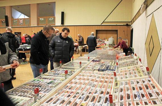 Ist man, im Gegensatz zu dem auch in Tettau stattfinden Funkflohmarkt, bei der Eisenbahn eher von lokal begrenztem Interesse ausgegangen, hat sich die Veranstaltung mittlerweile auch in größeren Entfernungen herumgesprochen. Diesmal waren Anbieter aus Berlin, Würzburg und dem Odenwald dabei, die mit den Verkäufern aus dem 100-Kilometer-Umkreis den 600 Quadratmeter großen Saal der Festhalle prall füllten. Auch über die gut 300 Besucher, mit hohem Anteil aus Thüringen, war Suffa sehr erfreut.