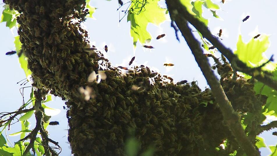 Diese Teilung des Bienenvolks dient der Vermehrung und Verbreitung der Insekten. Wenn die Tiere schwärmen, dann ziehen sie wie eine kleine Wolke durch die Gegend und lassen sich auf der Suche gerne auch einmal in einem Baum nieder - wie diesmal in Kronach.