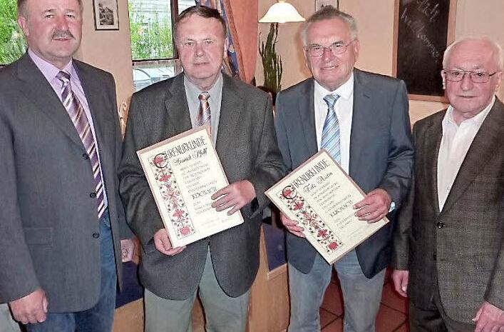 Über 30 Jahre im Vorstand Jürgen Neumann war es eine besondere Freude, Fritz Assion und Heinrich Pfaff zu Ehrenmitgliedern zu ernennen. So habe Assion über 30 Jahre als Kassierer und Schriftführer am Fortbestand des Vereins mitgewirkt.