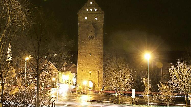 Münnerstadt — Auch das Obere Tor verbreitet in diesen Adventstagen vorweihnachtliche Stimmung. Der Verein "Freunde des Oberen Tores" beleuchtet in der Advents- und der Weihnachtszeit wieder das Türmergeschoss des mächtigen Torturmes. Die Lichter in den kleinen Fenstern des historischen Bauwerkes bekommen allerdings, wie man sieht, mächtige Konkurrenz von der Straßenbeleuchtung und den vorbeifahrenden Fahrzeugen.