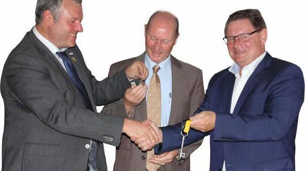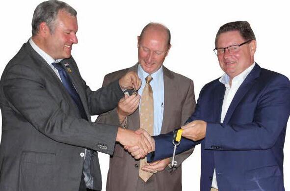Die Landesbaudirektion kann in Ebern einziehen. Der Bürgermeister händigte am Freitag symbolisch den Rathausschlüssel an Behördenleiter Johannes Nolte aus.