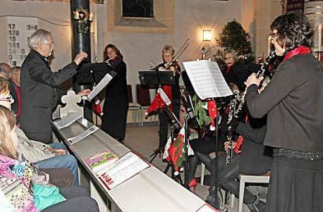 Das Damen-Orchester präsentierte sich musikalisch vielfältig. Die Palette der unterhaltsamen Weisen reichte von der Nikolauspolka bis zum traditionellen "Transeamus usque Bethlehem", eigentlich einem Chorwerk, das aber auch in der Bläser-Streicherbesetzung bestens klang. Auch nach Frankreich entführten die Musiker die zahlreichen Zuhörer.