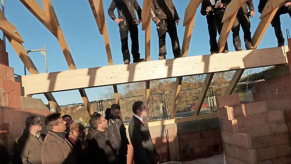 Die Ertüchtigung der Kläranlage Meschenbach ist ein Riesenprojekt für den Abwasser-Zweckverband. Mit dem Richtfest am Betriebsgebäude ist eine Etappe der 3,8 Millionen teuren Maßnahme geschafft.