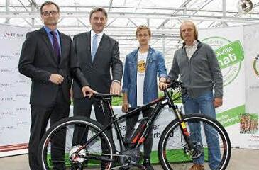 70 Jahre Bayerischer Bauernverband (BBV) waren der Anlass für ein bayernweites Preisausschreiben, das einem Nebenerwerbslandwirt aus dem Gremsdorfer Ortsteil Krausenbechhofen Glück brachte. Die N-Ergie Aktiengesellschaft aus Nürnberg war Sponsor eines wertvollen Preises, nämlich eines sportlichen E-Bikes. Der Gewinner Klaus Bayer und sein Sohn Stefan nahmen aus den Händen von BBV-Vizepräsidenten Günther Felßner aus Lauf und dem N-Ergie-Vorstandsvorsitzenden Josef Hasler sowie BBV-Direktor Rudolf Fähnlein das schwarze E-Bike im Wert von 4200 Euro strahlend entgegen.