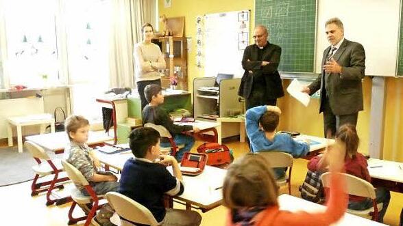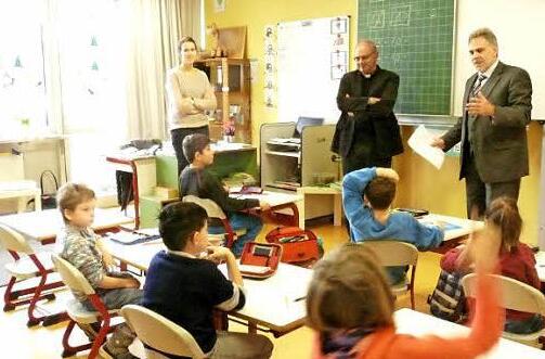 Dekan Kilian Kemmer besuchte an diesem Festtag verschiedene Klassen und Arbeitsgemeinschaften, um sich einen Eindruck von der ganzheitlichen Arbeit der Schule zu machen.