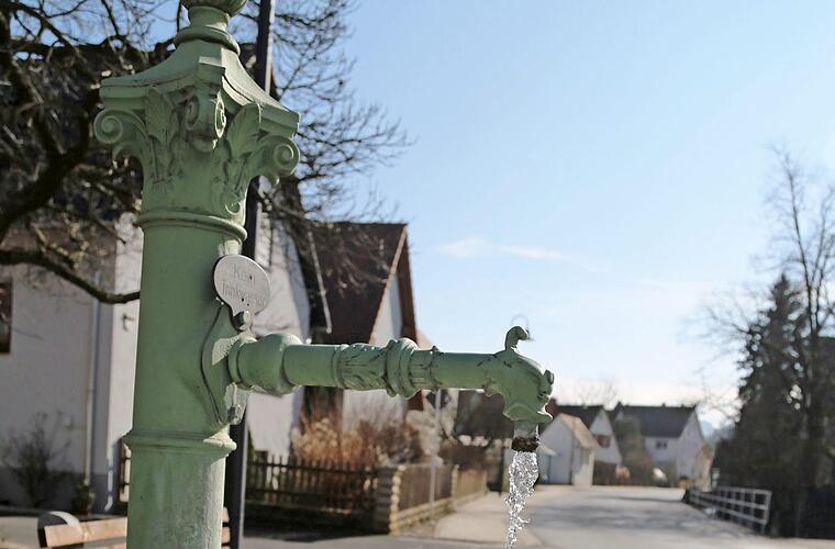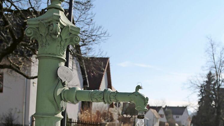 Der Dorfbrunnen in Mittelehrenbach trotzt den eisigen Temperaturen. Doch das Wasser vereist immer mehr. Foto: Franz Galster