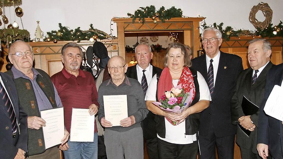 Dass waren die vier Gründungsmitglieder Josef Kuhn, Andreas Ullrich, Lorenz Dümpert und Franz Naumann, die für 55-jährige Mitgliedschaft eine Auszeichnung erhielten. Weiter wurden geehrt: Albert Naumann (40 Jahre), Siegfried Gerhard (35 Jahre) und Irene Derra (30 Jahre). Mit seinen Liedern sorgte der Chor für die weihnachtliche Stimmung bei der Feier in Gleisenau.