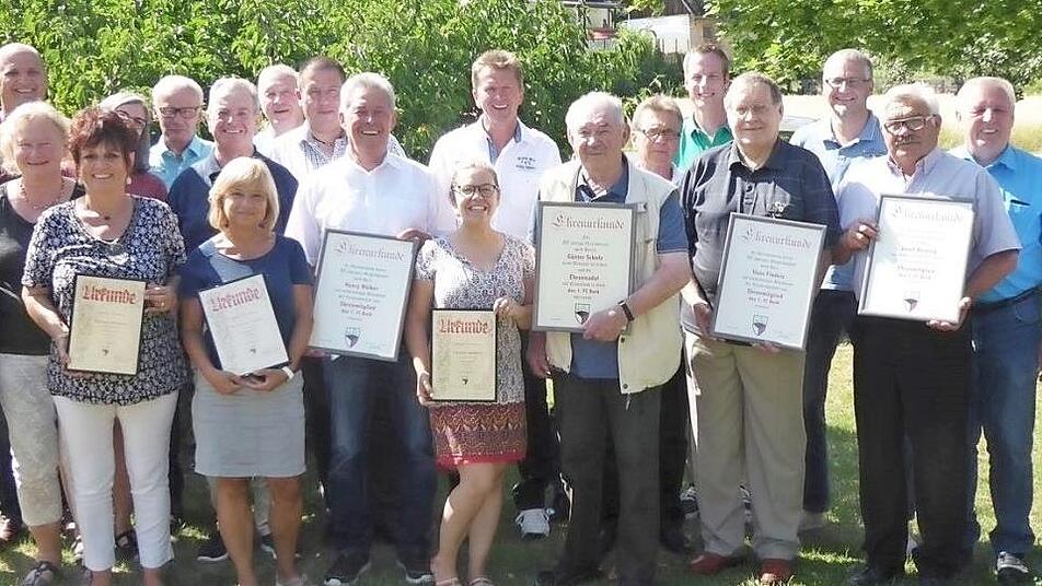 Burk feierte im Biergarten seiner Sportgaststätte einen Ehrungsnachmittag, an dem langjährige Mitglieder für ihre Treue zum Verein ausgezeichnet wurden.