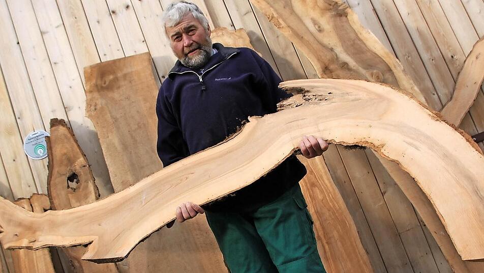 "Das ist Leben, das wird nie langweilig", beschreibt er seine Neugier, die Reise ins Innere des Baumstamms. Astlöcher werden zu Augen, krumme und ungenormte Strukturen zu Fabelwesen, wenn der Fantasiebegabte die aufgesägten Stämme mit Muße betrachtet. Mit den Baumstämmen ist das ein wenig so wie mit dem sagenhaften Fisch, der im Staffelberg verborgen sein soll: Bevor sie nicht aufgeschnitten sind, weiß keiner, welcher Drache oder Eber sich in der Maserung der Jahresringe versteckt.