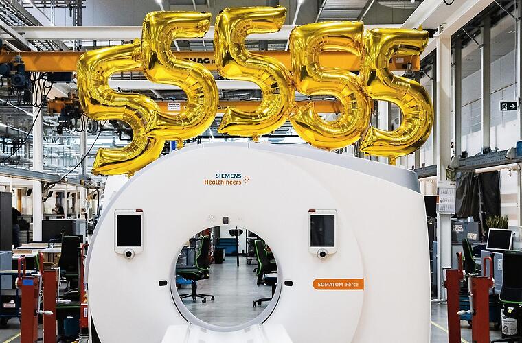 Das Medizintechnikunternehmen Siemens Healthineers hat seinen weltweit 55 555. Computertomographen (CT) ausgeliefert. Dieser wurde in Forchheim gefertigt.