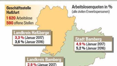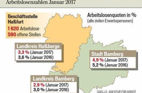 Die Arbeitslosigkeit ist im Landkreis Haßberge von Dezember auf Januar um 241 Personen auf 1620 Erwerbslose gestiegen. Diese Zahlen gab die Arbeitsagentur i...