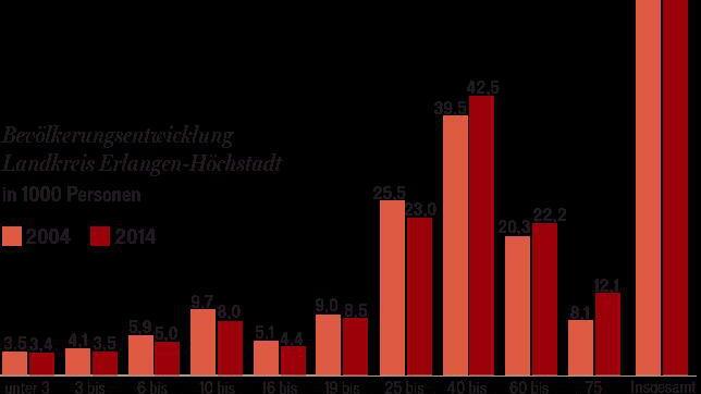 Statistik Die demografische Entwicklung macht auch vor Erlangen-Höchstadt nicht halt. Es steigt zwar die Zahl der älteren Menschen, aber auch die der Einwohner insgesamt. Wachenroth und Vestenbergsgreuth sind die jüngsten Gemeinden.