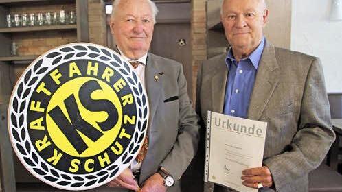 Reinhardt Baumgartner nutzte den Ehrungsnachmittag, um noch immer das schwarz-gelbe KS-Schild hochzuhalten. Denn der KS ist seine Lebensaufgabe geworden. "Ich habe immer versucht, den Menschen zu helfen", sagt Baumgartner. Seit mehr als 40 Jahren hat Baumgartner in der Ortsverwaltung des Kraftfahrer-Schutzes Verantwortung übernommen und den KS federführend geprägt.