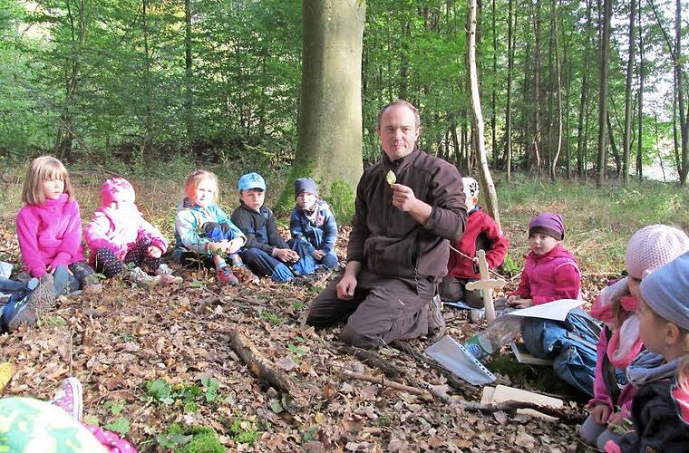 Baunach — Joachim Russ, Naturcoach und Mitarbeiter der Waldkindergruppe des Bund Naturschutz Ebern, breitet ein ganzes Sammelsurium auf dem laubbedeckten Boden aus: Bucheckern, ein Buch, ein Blatt mit Buchstaben und ein Holzschwert. Der Kindergarten St. Oswald Baunach hatte einer seiner Gruppen im Rahmen ihres Jahresthemas "Der Natur auf der Spur" ein ganz besonderes Angebot ermöglicht: ein mehrtägiges Waldprojekt. Im Zentrum stand die Buche, die Mutter des Waldes.