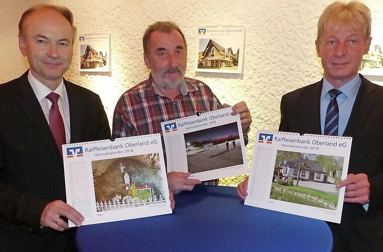 Seit 2015 legt die Raiffeisenbank Oberland einen Heimatkalender auf. Nachdem dieser bei den Mitgliedern und Kunden sehr gut angekommen ist, wird es 2018 eine Neuauflage geben. Die Vorstände Ralph Goller und Peter Girndt sowie Hartmut Fischer stellten ihn jetzt der Öffentlichkeit vor.