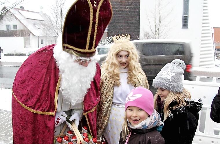 Neben den Vereinen konnte der Bürgermeister auch eine Reihe von Hobbykünstlern begrüßen, die Selbstgemachtes wie Pralinen, Handarbeiten, Gestecke, Plätzchen, Schmuck, Liköre, Pralinen, Keramikarbeiten, Honig, Kinderkleidung, Socken und liebevoll hergestellte Verpackungen aus Papier sowie Geschenke aus Holz- und Metall anboten. Für die Kinder gab es Rundfahrten mit einer Pferdekutsche des Reit- und Fahrvereins Niederlindach. Mit dieser kam dann auch der Nikolaus mit dem Christkind Lea Dittrich, und erstaunlicherweise kannte der Nikolaus die meisten Kinder oder zumindest die Eltern, denn unter dem wallenden weißen Bart versteckte sich das Gemeindeoberhaupt selbst. "Natürlich sind unsere Kinder alle sehr brav", behauptete der Nikolaus und verteilte solche aus Schokolade.