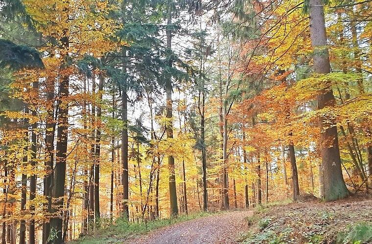 Der Oktober hat es ja leider nicht wirklich geschafft, sich als Gold-Monat zu präsentieren. Dafür gelingt das dem November bisher umso besser. Wenn Sonnenschein auf Herbstwald trifft, wie hier auf dem Almweg oberhalb von Losau, ergibt das einen traumhaften Indian Summer made in Frankenwald. Foto: Christine Fischer