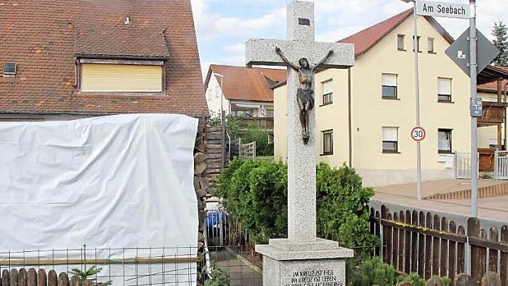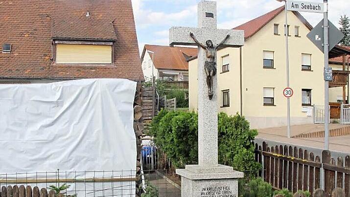 Das von Familie Gumbert gespendete Kreuz ist der feste unverrückbare Bestandteil der Ortseinfahrt.