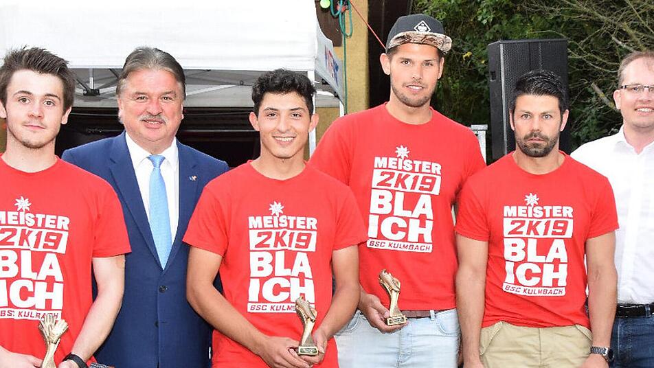 Die Kicker von "Lazio Koma" waren am Ende die Turniersieger und sicherten sich 15 Liter Fassbier. Am Abend fand die offizielle Meisterfeier der Blaicher Fußballer statt, die sich in der abgelaufenen Spielzeit den Titel in der Kulmbacher A-Klasse gesichert hatten. Die Vereinsvertreter des TSV Melkendorf und des VfR Katschenreuth waren vor Ort und überreichten den Blaichern ein Geschenk. Auch Landrat Klaus Peter Söllner (FW) und Zweiter Bürgermeister Ralf Hartnack (WGK) beglückwünschten den BSC.