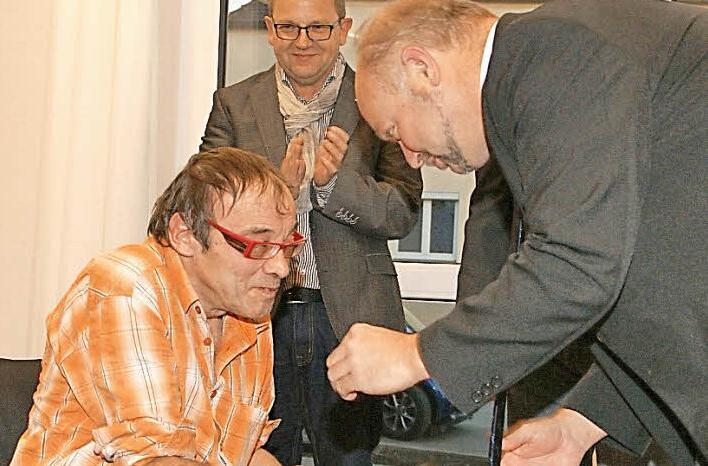 Jetzt trafen sich die erfolgreichen Teilnehmer im Wohnheim der Lebenshilfe in Haßfurt, um ihre Sportabzeichen in Empfang zu nehmen. Landrat Wilhelm Schneider übernahm nicht nur die Schirmherrschaft, er war natürlich auch angetreten und hatte im ersten Anlauf das Sportabzeichen in Gold erworben.
