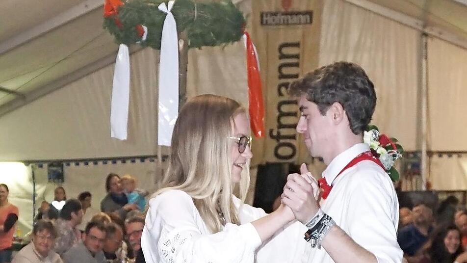 Bei der Bucher Kerwa wurde am Kirchweihmontag ein dritter Baum aufgerichtet, aber nicht auf der Wiese, sondern er wurde inmitten des Festzeltes verankert, und dafür waren auch keine Schwalben notwendig. Denn der traditionelle Kirchweihbrauch, der bei keiner fränkischen Kerwa fehlen darf, das Betz'n Raustanzen, wird auch im Weisendorfer Ortsteil Buch gepflegt. Um den "Mini-Baum" zogen dann zwölf Paare zu den Klängen von "Honeybee and Kisses" ihre Runden, und die Burschen sangen ihre mehr oder minder jugendfreien Lieder.