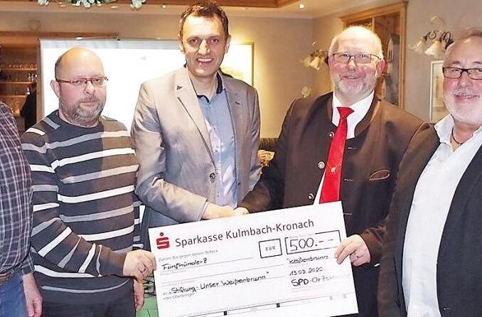 Die SPD-Ortsvereine Hummendorf-Thonberg-Weißenbrunn im Bierdorf Weißenbrunn spendeten 500 Euro an die Bürgerstiftung Weißenbrunn. Insgesamt konnte man 1500 Euro aus Wahlkampfveranstaltungen und Verzicht auf Werbeartikel an soziale Zwecke weitergeben.