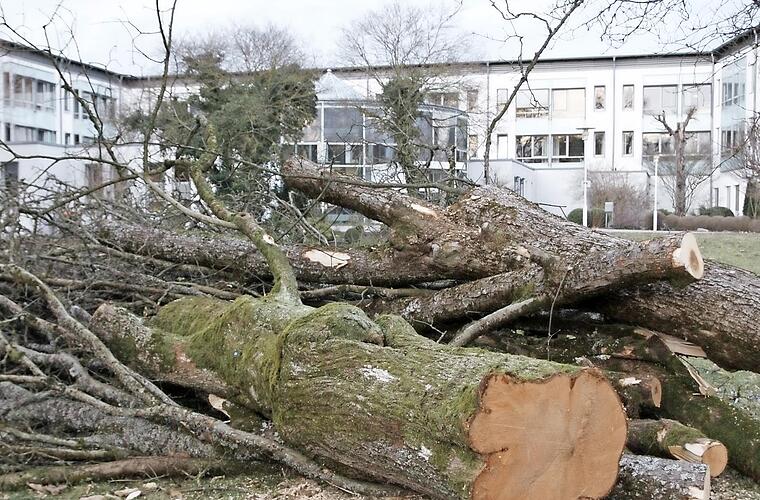 Die ersten Bäume für das MedZentrum an der Franz-von-Prümmer-Klinik sind am Freitag gefällt worden. Augenscheinlich handelt es sich um vier Exemplare, eines davon eine Birke.