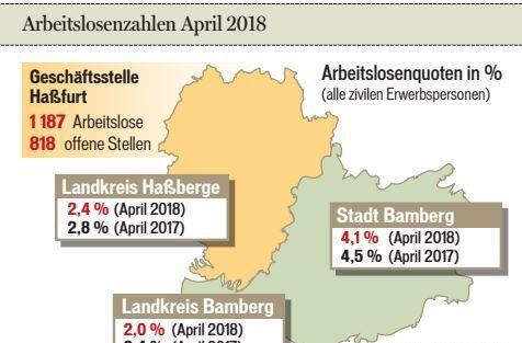 Der positive Trend hält an: Die Arbeitslosigkeit im Landkreis Haßberge hat sich von März auf April dieses Jahres um 121 Personen auf 1187 Erwerbslose verringert. Diese und viele weitere Zahlen gab die...
