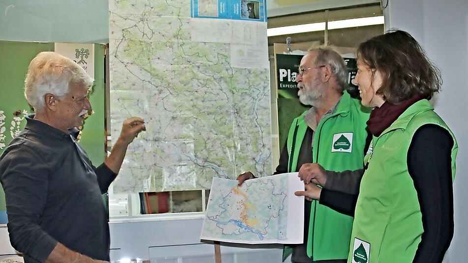 Monitoring, die Überwachung von Pflanzen, Tieren und Lebensräumen, gehöre auch zu den Aufgaben. Anhand einer Karte verdeutlichten die Gebietsbetreuer ihr Einsatzgebiet mit zwei Schwerpunkten. Ausgenommen sei der Steigerwald, da dort schon einiges laufe.